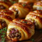A delicious twist on classic comfort food, these roll-ups combine flavors of a cheeseburger with creamy Alfredo sauce wrapped in flaky crescent dough.