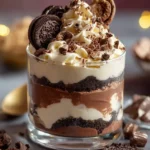- Layer the Trifles: Place the cheesecake mixture and chocolate whipped cream in separate piping bags. In four lowball glasses, layer cookie crumbs, cheesecake mixture, and whipped cream. Repeat with another layer of each.