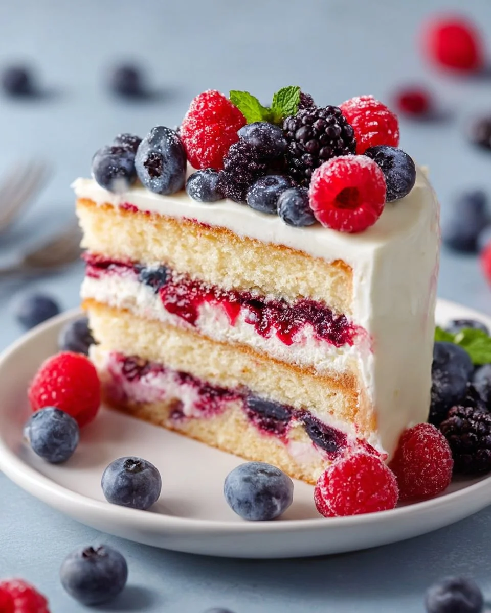 12. Decorate: Top the cake with extra fresh berries for a stunning finish.