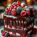 A delightful dessert that combines rich chocolate with sweet and tangy mixed berries, perfect for celebrations or satisfying a sweet tooth.