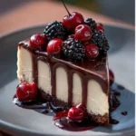 A rich and creamy dessert that combines chocolate cheesecake with sweet-tart cherry topping, perfect for any celebration.