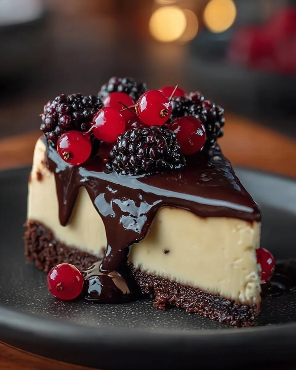 A luscious dessert combining chocolate, cream cheese, and cherries, perfect for any occasion.
