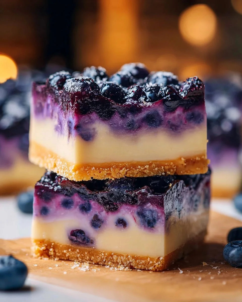 Delightful Blueberry Cheesecake Bars combining rich cheesecake with fresh blueberries, perfect for gatherings or a sweet snack.