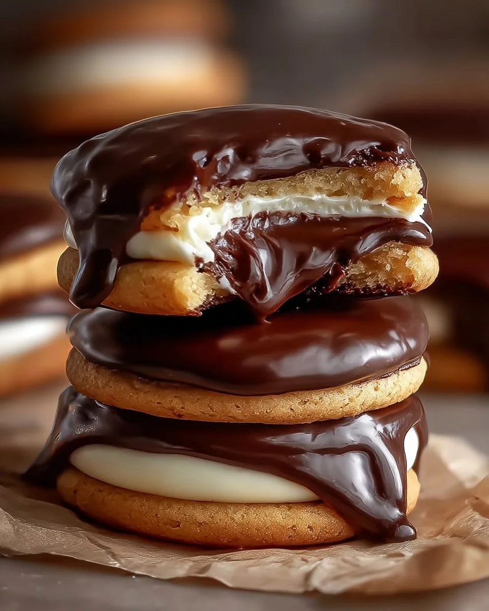 A delightful twist on the classic dessert, these cookies combine a soft, buttery cookie with a creamy filling and rich chocolate glaze.