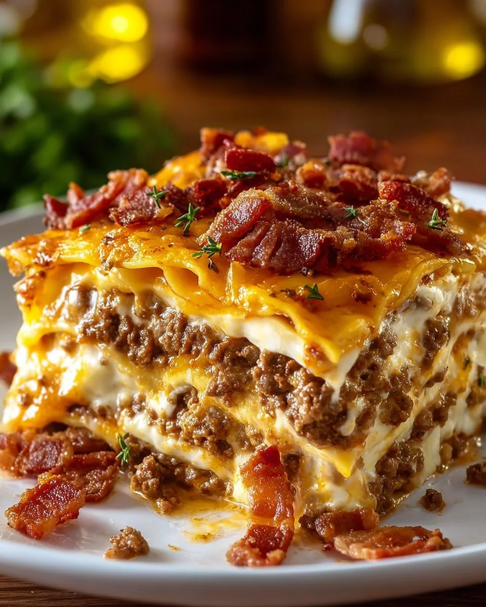Breakfast Bacon Cheeseburger Lasagna
