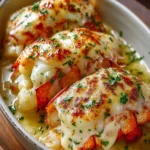 Luxurious broiled lobster tails in a rich creamy garlic butter sauce, perfect for special occasions or indulgent meals.