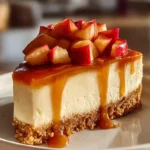A delightful dessert that combines creamy cheesecake with sweet and tart apples and caramel, perfect for any occasion.