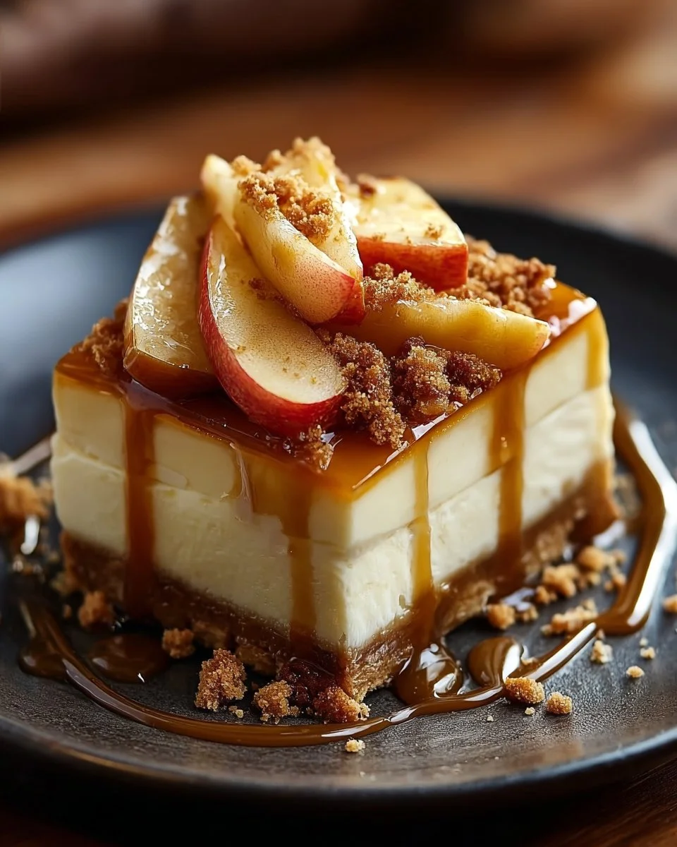 A delightful treat combining creamy cheesecake, sweet apples, and rich caramel, perfect for any occasion.