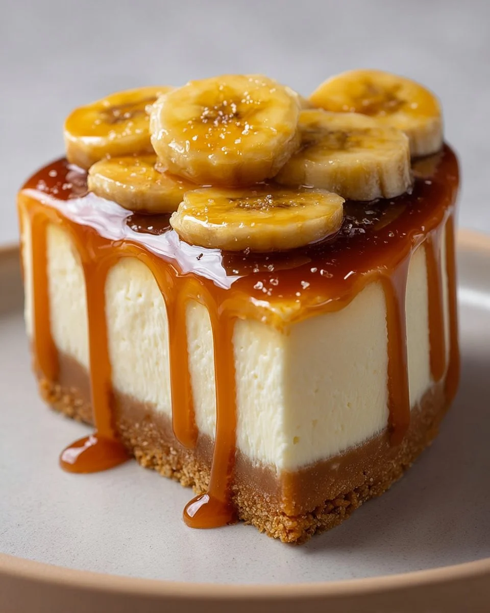 A delightful dessert combining creamy cheesecake with the sweetness of bananas and rich caramel, perfect for any occasion.