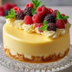 Place the springform pan on a baking sheet and bake for 50-60 minutes, or until the edges are set and the center is slightly jiggly. Turn off the oven and let the cheesecake cool inside with the door slightly ajar for 1 hour to prevent cracking. After that, remove from the oven and let it cool to room temperature. Refrigerate for at least 4 hours or overnight.