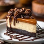 A delicious dessert combining creamy cheesecake with sweet caramel and fudge, perfect for any occasion.