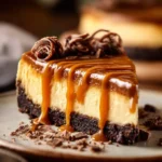 A delicious dessert that combines the rich taste of cheesecake with sweet flavors of caramel and fudge.