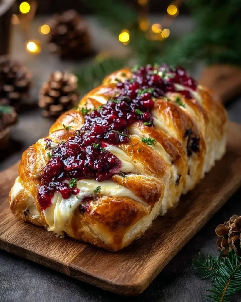 Garlic Herb Sourdough Bread Stuffed with Brie and Cranberry Sauce