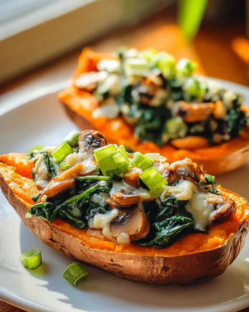 Sweet Potato Skins Loaded with Spinach, Mushroom, and Feta