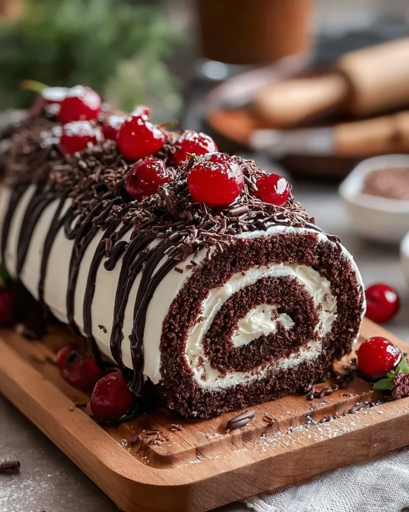 Elegant Black Forest Roll Cake