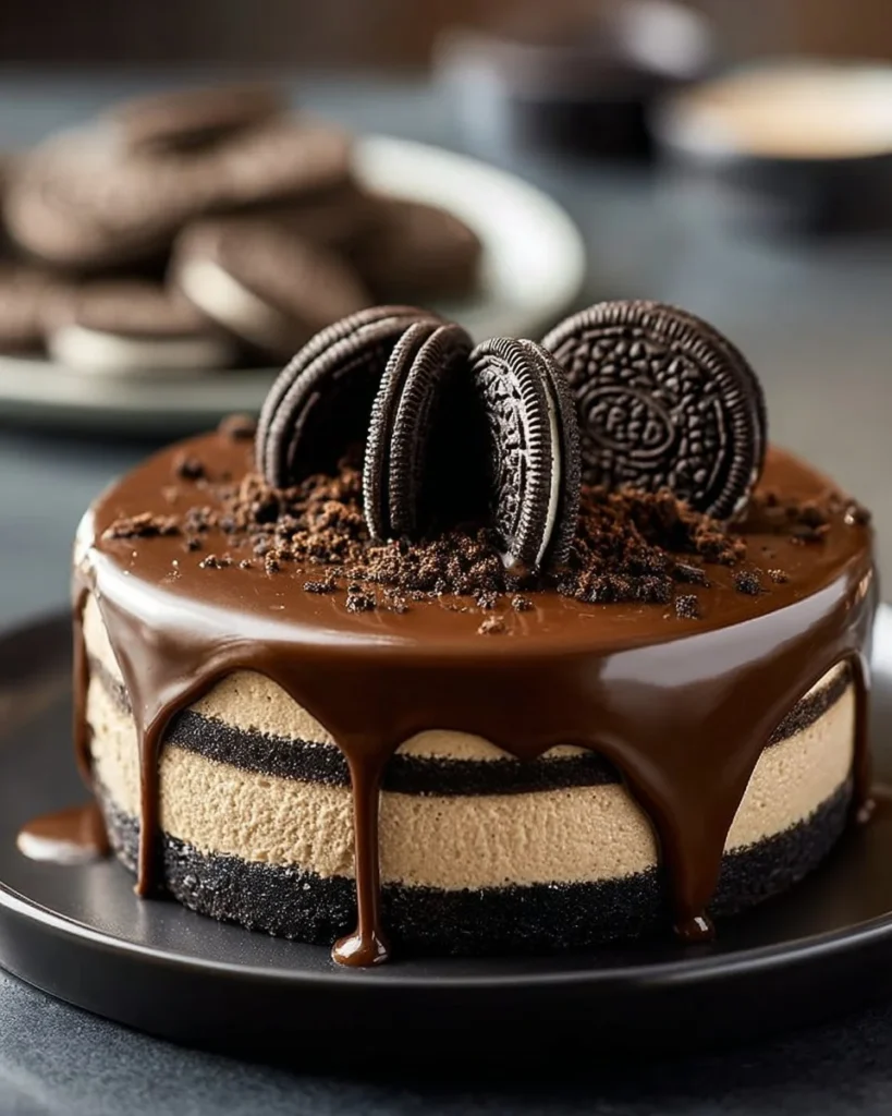 Layered Chocolate Cheesecake with Oreo Crust