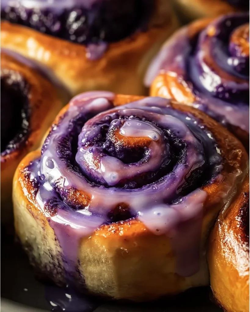 Delicious ube cinnamon rolls topped with creamy frosting