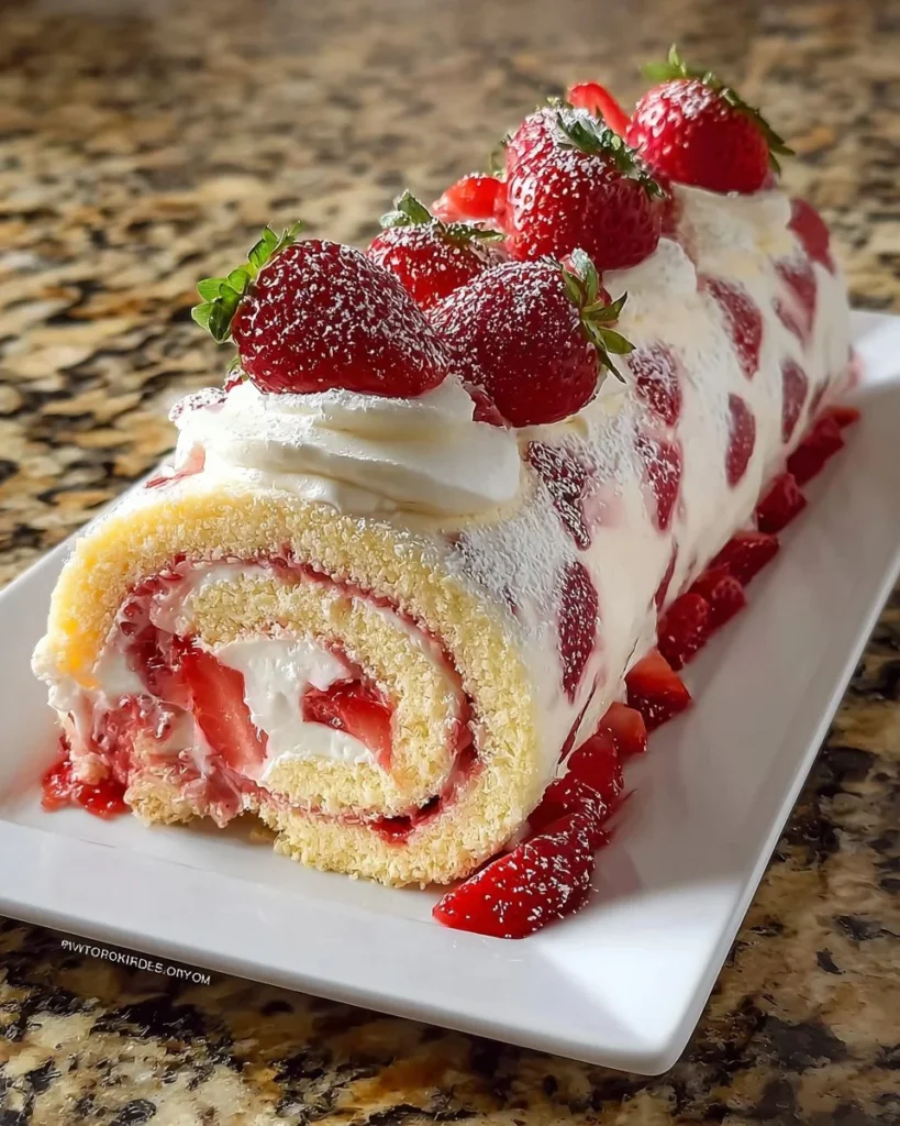 Delicious Strawberry Swiss Roll Cake with fresh strawberries and cream filling