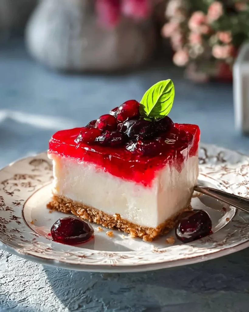 Delicious Raspberry Cheesecake Lasagna layered with creamy cheesecake and fresh raspberries