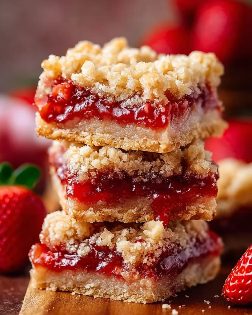 Delicious homemade strawberry crumble bars with a golden crust and fresh strawberries