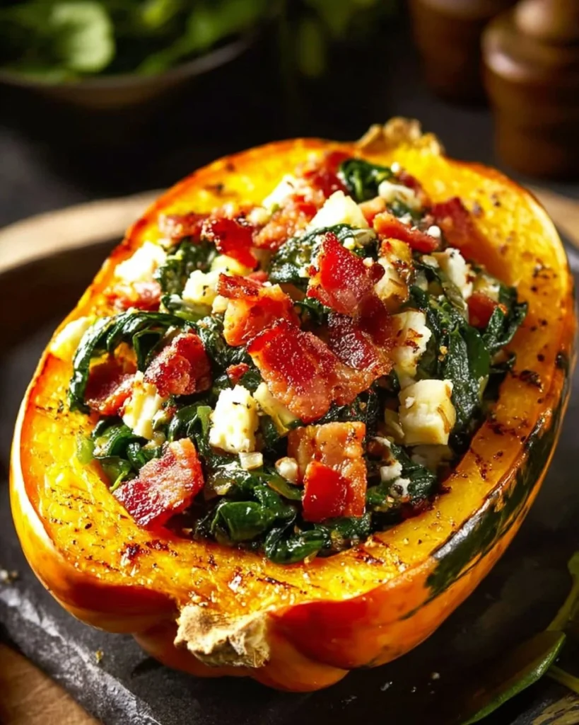 Stuffed Butternut Squash with Feta, Spinach & Bacon