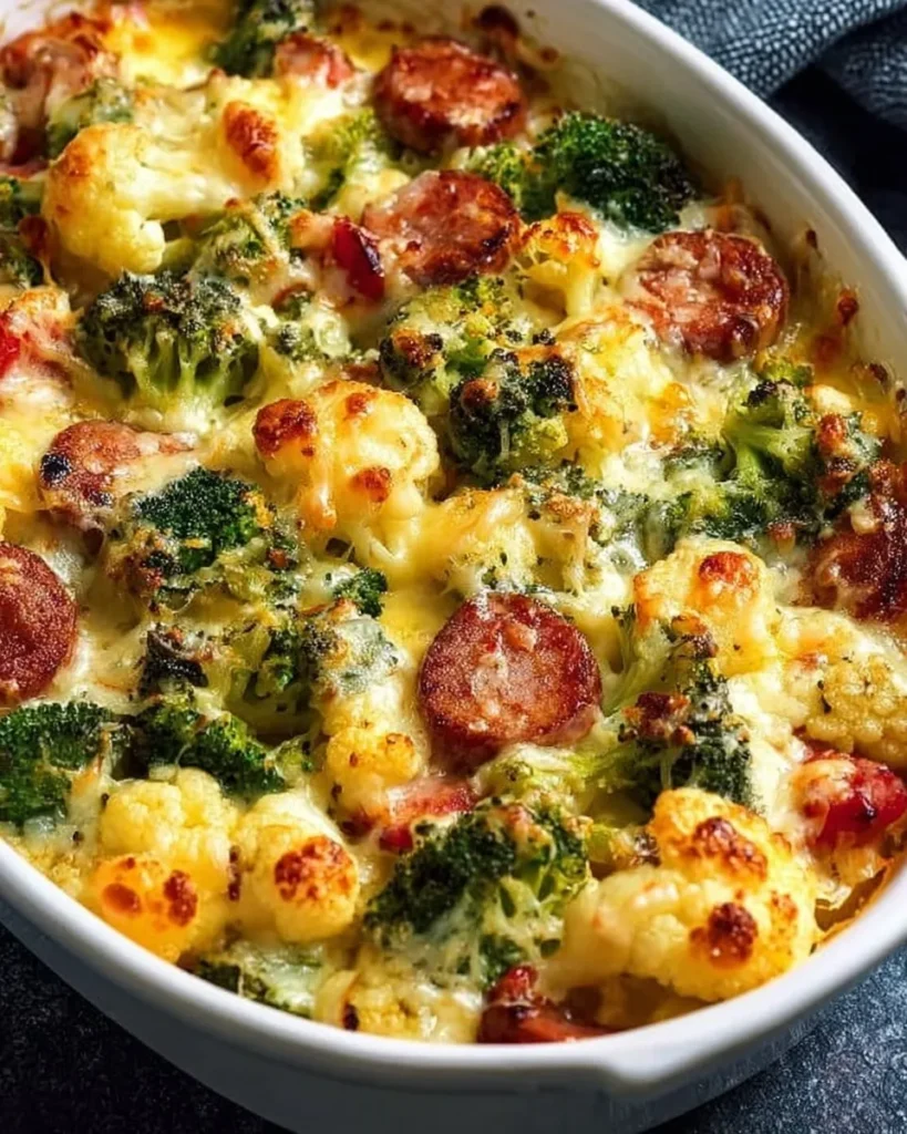 Mediterranean Cheesy Broccoli and Cauliflower Bake