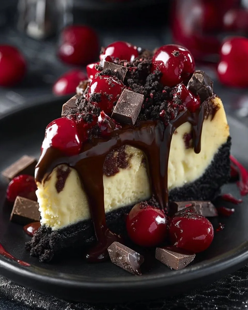 Keywords: cheesecake, dessert, chocolate, cherries, easy recipe
