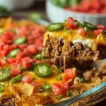 Cheesy Dorito Casserole is a fun and easy dish that brings together great flavors in one delicious meal. It combines the crunch of Doritos with a tasty beef mixture and lots of cheese. This dish is perfect for family dinners, game day gatherings, or any time you want a comforting treat.
