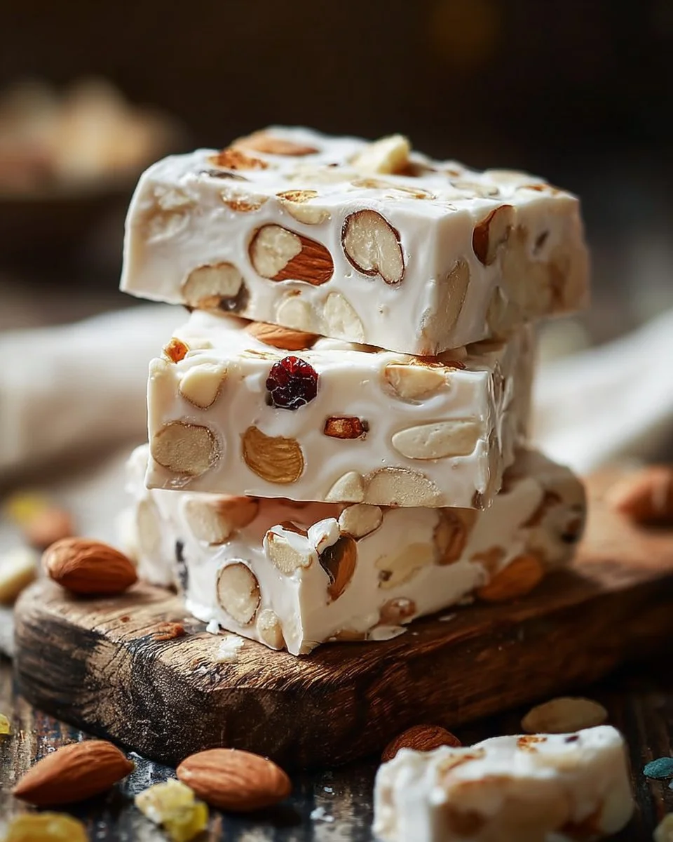 Chewy Homemade Nougat Bars are a delightful treat that brings together sweet, creamy flavors and the satisfying crunch of nuts and dried fruits. This easy recipe is perfect for satisfying your sweet tooth or sharing with friends and family. Whether you’re making them for a special occasion or just for fun, these nougat bars are sure to be a hit!