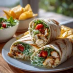 The Chicken Caesar Wrap with Crunchy Romaine is a delicious and easy meal that combines tender grilled chicken with fresh romaine lettuce, creamy Caesar dressing, and Parmesan cheese all wrapped up in a soft tortilla. This wrap is perfect for lunch or dinner and is sure to please anyone who loves the classic Caesar salad!