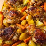 Chicken thighs with potatoes is a delicious and comforting dish that is perfect for family dinners. This meal is simple to prepare, and it cooks in the oven while you relax or take care of other tasks. The combination of tender chicken, soft potatoes, and a sweet and savory sauce makes it a favorite in many households.