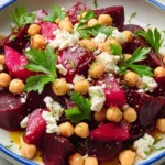 A bright and refreshing salad featuring chickpeas, roasted beets, crumbled feta, and a zesty lemon-garlic vinaigrette.