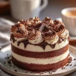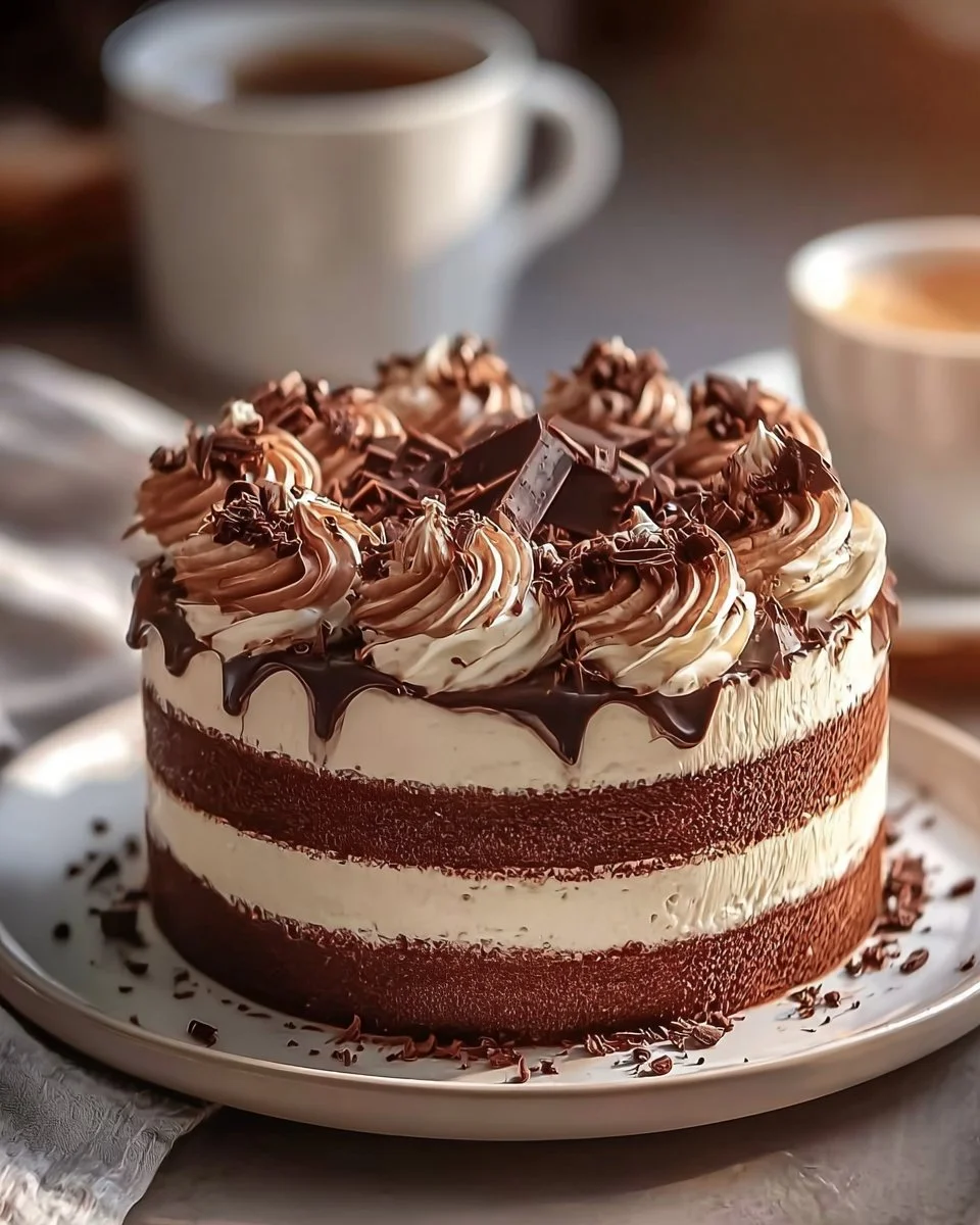 A delightful dessert combining rich chocolate cake and creamy mousse that melts in your mouth, perfect for chocolate lovers.
