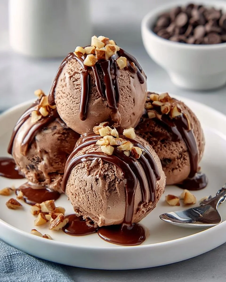 6. Scoop into bowls, drizzle extra fudge sauce if desired, and savor your decadent, nutty chocolate masterpiece!