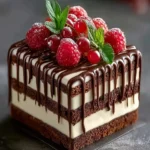 Make the Ganache – Heat 1/2 cup heavy cream in a saucepan until it just begins to simmer. Pour it over the chopped dark chocolate, let it sit for 2-3 minutes, then stir until smooth. Drizzle the ganache over the chilled cake for an extra decadent finish. Enjoy your symphony of chocolate bliss!