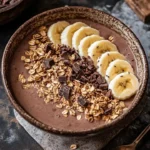 A delicious and healthy Chocolate Banana Smoothie Bowl featuring creamy yogurt, rich cocoa powder, and the natural sweetness of banana.