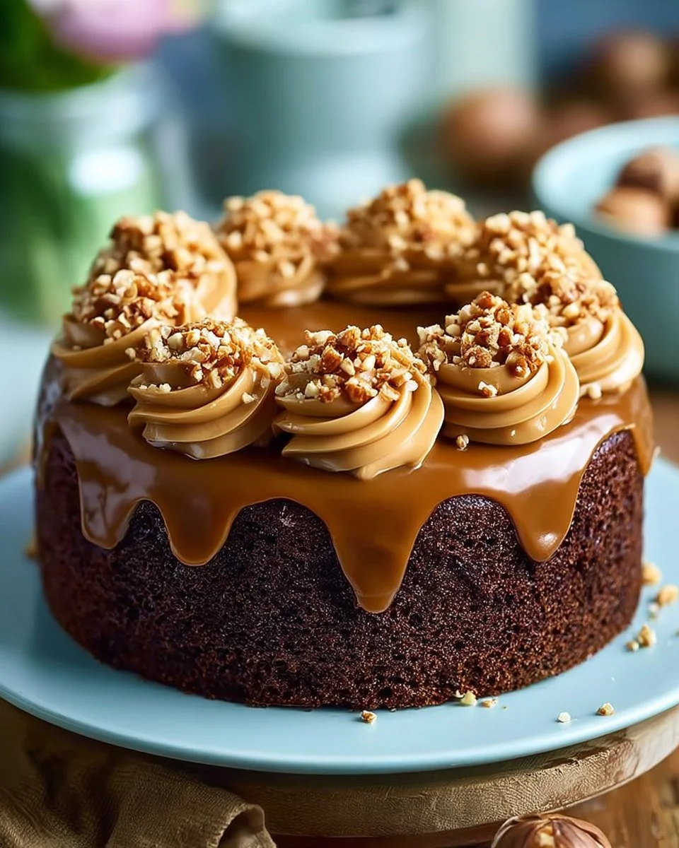Enjoy baking and indulging in this delightful Chocolate Cake with Caramel and Coffee Icing!