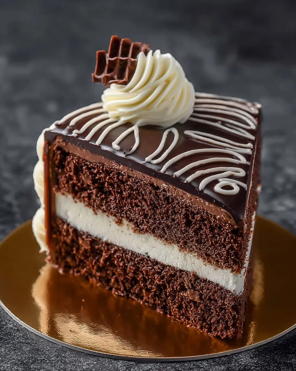 Chocolate Cake with Vanilla Cream and Ganache Decoration