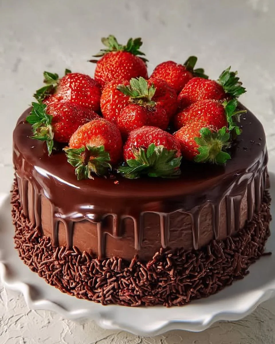 A delightful dessert combining rich chocolate flavor with fresh strawberries, perfect for any occasion.