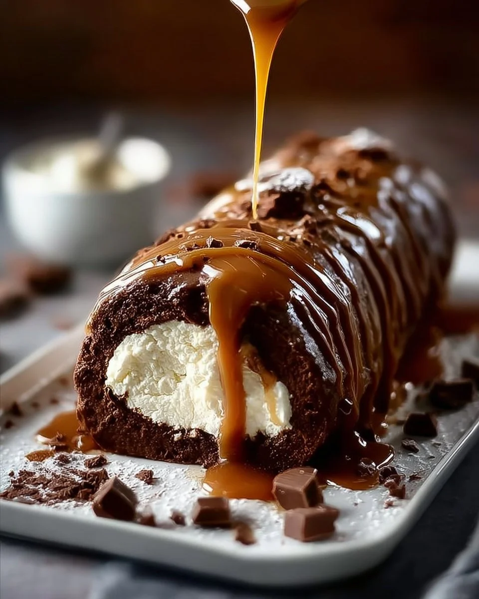 Follow these easy steps to create your very own Chocolate Caramel Cream Roll.