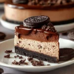 A rich and creamy chocolate cheesecake with a delightful Oreo crust, perfect for any occasion.