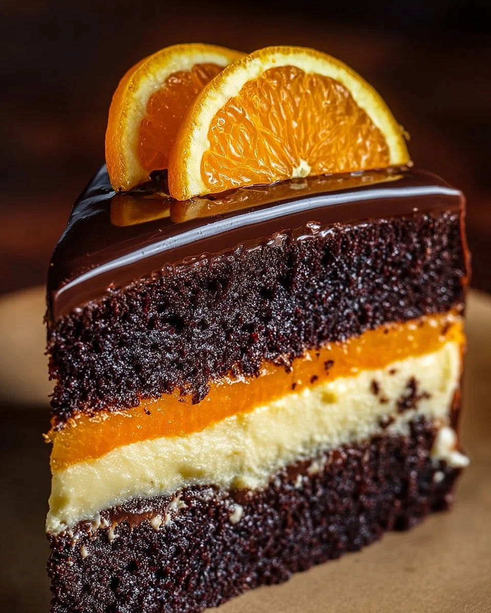A delightful dessert that blends rich chocolate cake with a creamy orange cheesecake filling, perfect for celebrations and gatherings.