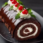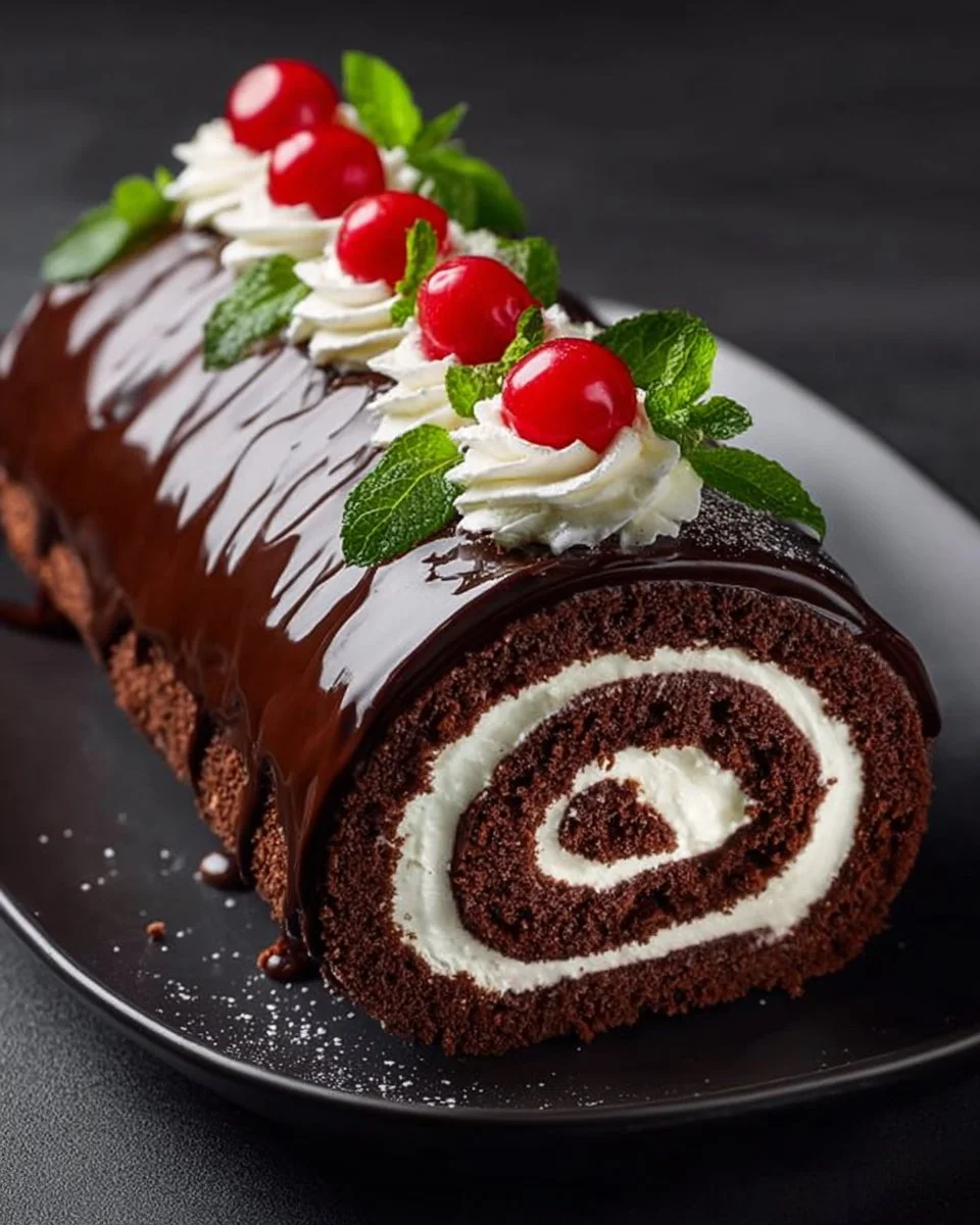 A light and airy sponge cake filled with rich chocolate whipped cream, rolled to perfection.