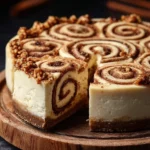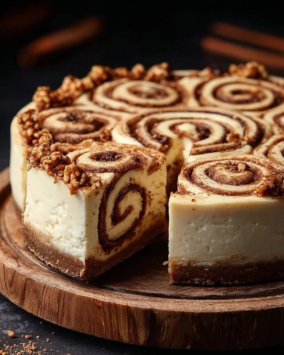 A delightful treat combining creamy cheesecake and warm cinnamon roll flavors, perfect for any occasion.
