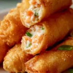 Crispy egg rolls filled with a creamy mixture of cream cheese, crab meat, and green onions, offering a delightful twist on traditional crab rangoon.