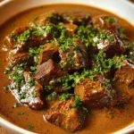 4. Simmer: Return the browned beef to the skillet. Cover and let it simmer for 45–60 minutes until the beef is tender.