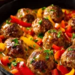 Creamy Dreamy Meatballs & Pepper Skillet is a comfort food that brings joy to the dinner table. This dish features savory meatballs coated in a rich and creamy sauce, paired with colorful bell peppers and onions. It’s an easy and satisfying meal that the whole family will love.