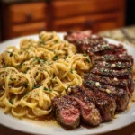 If you’re looking for a delicious and hearty meal, Creamy Garlic Parmesan Shells with Butter-Seared Steak Bites is the perfect dish! This recipe brings together tender pasta, rich creamy sauce, and perfectly seared steak for a satisfying dinner. It’s a comfort food classic that is sure to impress your family and friends.