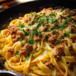 Creamy Ground Beef Linguine Pasta with Parmesan Garlic Cream Sauce