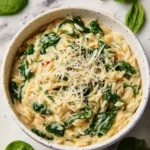 Creamy Parmesan Spinach Orzo is a comforting and delicious dish that’s easy to make. The creamy texture combined with the savory Parmesan and fresh spinach makes it a perfect meal or side dish. Whether you’re preparing dinner for your family or hosting friends, this dish is sure to impress!